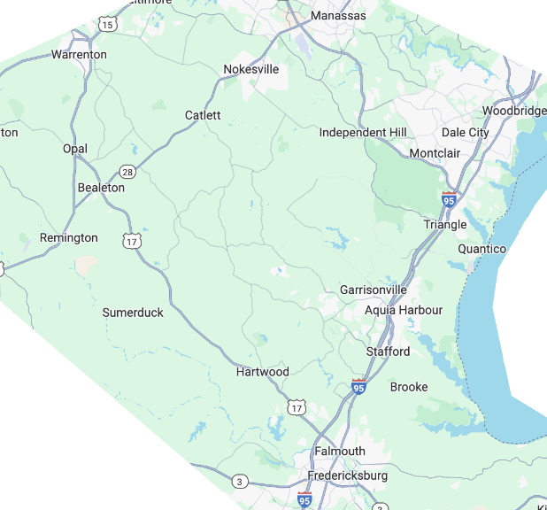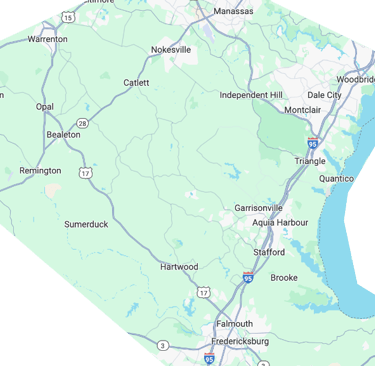 In-home sessions: available only within the mapped service area (about 45 minutes from northwest Stafford, traffic-dependent—not a perfect circle).